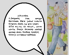 мақсатында сұрақтар қойылады. Үйтапсырмасы: шығармадағы кейіпкердің біреуіне хат жазу