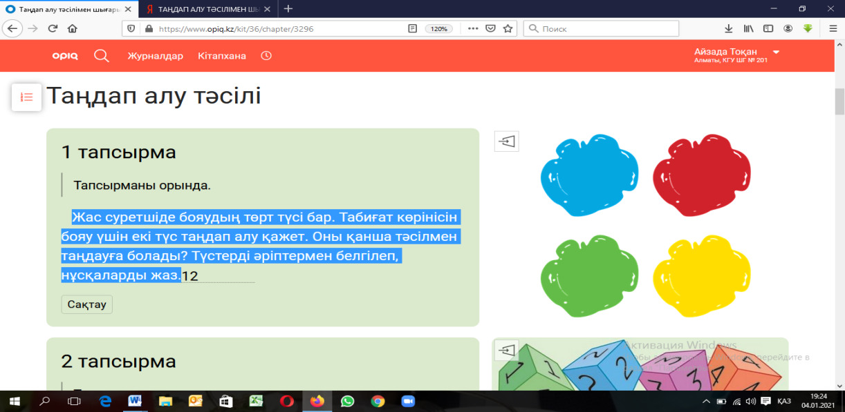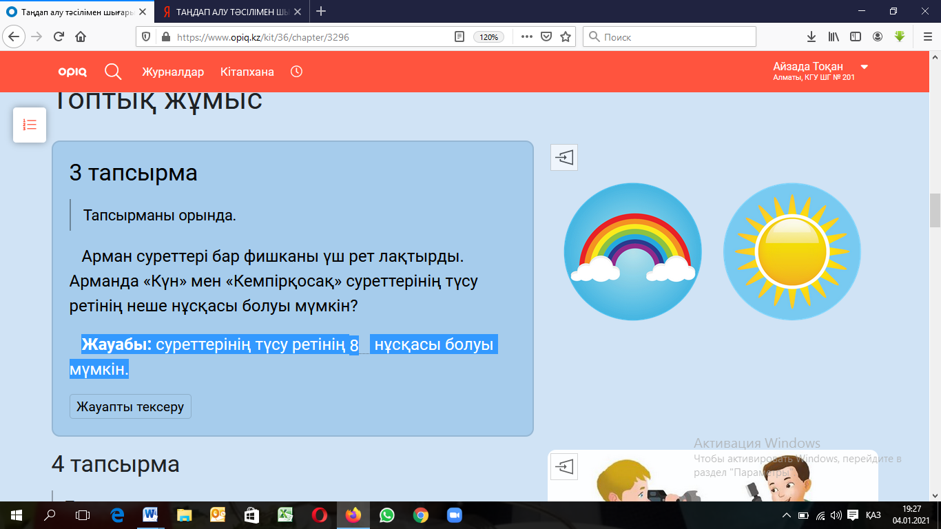 Дескриптор: оқулықта берілген тапсырмаларды өз бетінше орындайды.