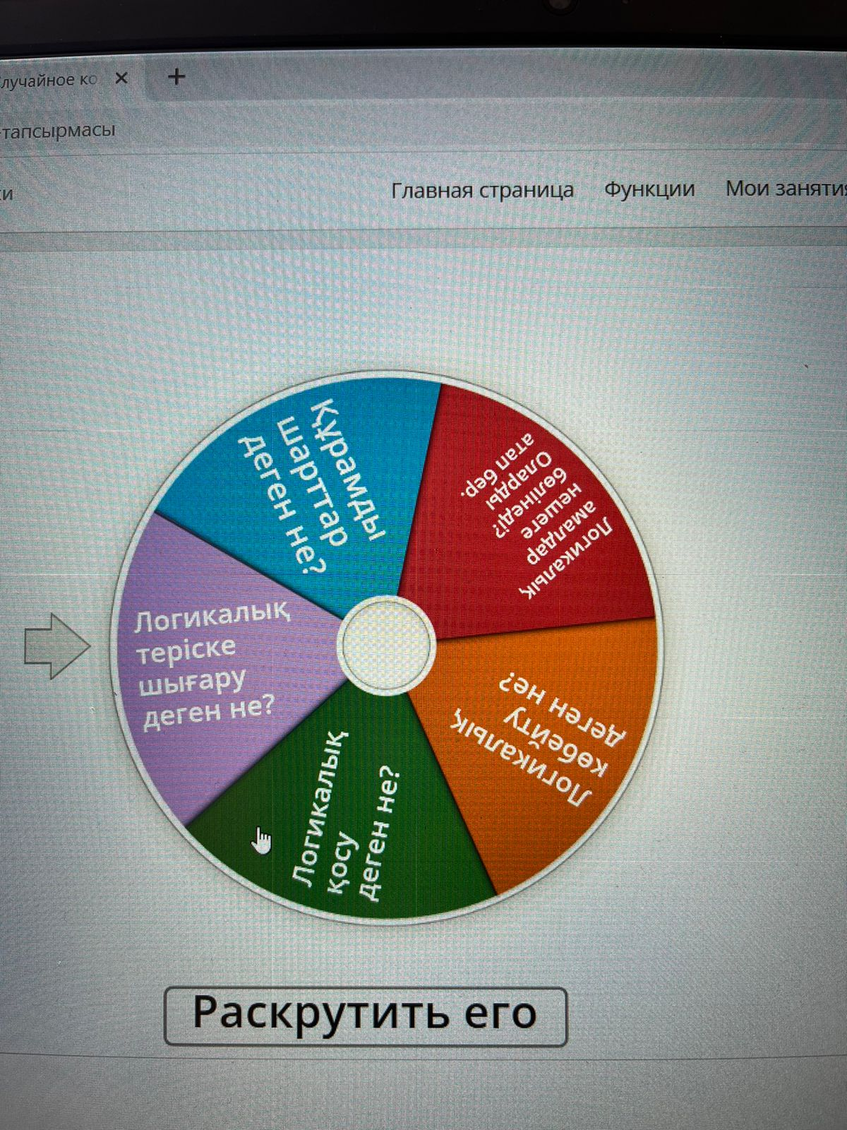 Wordwall платформасы арқылы үй тапсырмасын тексеру 1)Құрамды шарттар деген не? 2)Логикалық амалдар нешеге бөлінеді? Атап бер. 3)Логикалық көбейту деген не? 4)Логикалық қосу деген не? 5)Логикалық теріске шығару деген не? |