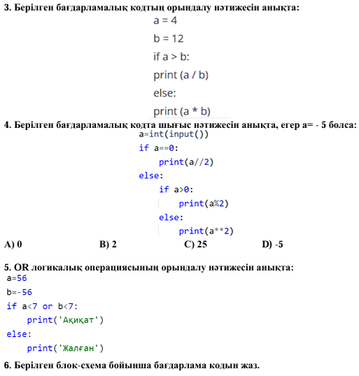 7.3.2.1 Python (пайтон) программалау тілінде тармақталған алгоритмдерді жазу; |