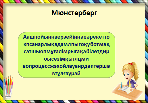 Ұсынылған техниканы, жаттығулар мен тапсырмаларды қолдануға уақыт бөлуге өкінбеңіз. Бұл тек 1-3 минут. Уақыт үнемделеді, өйткені қызығушылық, көңіл-күй, белсенділік және жұмысқа қабілеттіліктері артады. Бұл балалардың денсаулығын жақсартады және білім сапасын арттырады.