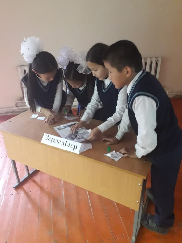 Бұл айналымда топтарға тақтадан суреттер көрсетіледі. Сол суреттерді қима суреттермен құрастырасыңдар.