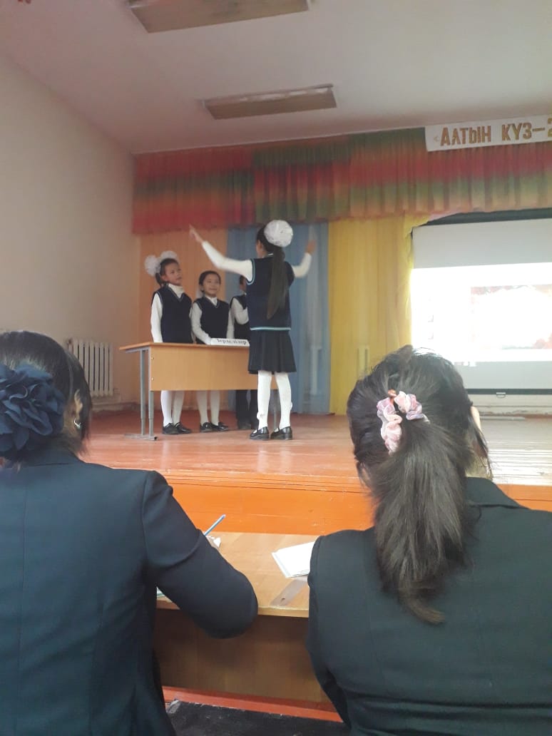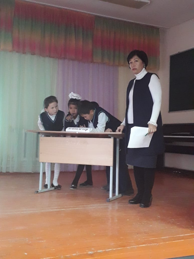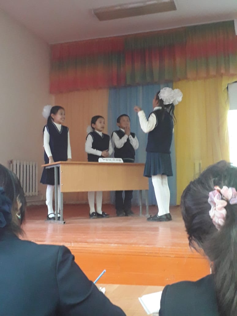 - Балалар, бүгін біздің 4 сынып оқушыларының арасында «Тапқыр болсаң, озып көр!» атты зияткерлік білім сайысы өткізіліп отырмыз. Осы сайысқа екі сынып оқушылары ішінен екі топ құрылып, өзара білімдерімен сынға түспек. Ендеше сайысымыздың қатысушыларына қошемет көрсетіп қойсақ.