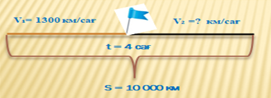 Шешуі :10 000 км : 4 сағ = 2500 км/сағ 2500 км - 1300 км/сағ = 1200км/сағ Жауабы : екіншісінің жылдамдығы 1200 км/сағ |