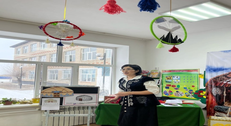 Суреттер, ұлттық бұйымдар, үлестірмелі материал, киіз үй макеты. |