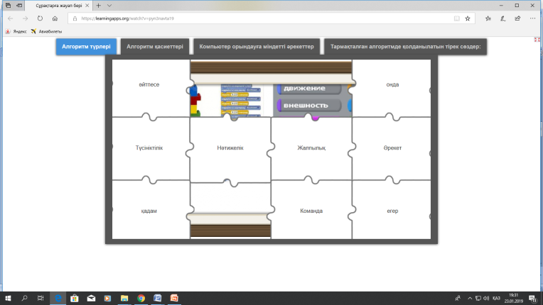 Жұптық жұмыс: «Сәйкестендіру» Learning Apps бағдарламасында оқушылар жұптасып отырып компьютерде тапсырма орындайды.