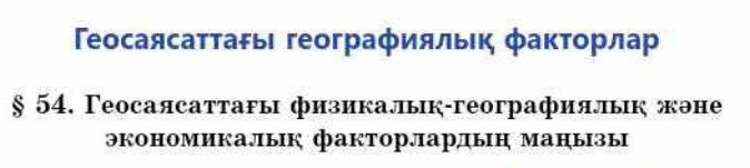 Бүгінгі сабақта: Геосаясаттағы физика-географиялық және экономикалық факторларға баға беруді үйренесіңдер |