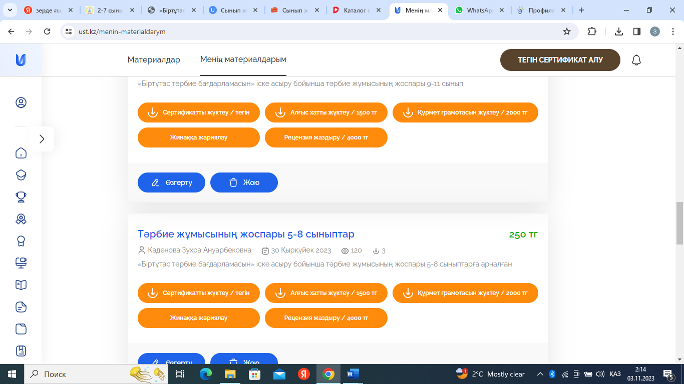 Сайтқа 25 материал жариялап, тегін ҚҰРМЕТ ГРОМАТАСЫН алыңыз!