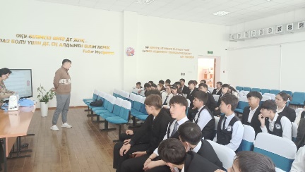 2023-2024 оқу жылы бойынша 15-19.04.2024 ж күндері аралығында өткізілген “Мамандық- өмір таңдауы” атты апталық аясында “ Мамандық таңдау –ең маңызды мәселе” тақырыбында шеберлік сабақ форматында 9 сынып оқушыларымен тренинг-кездесу өткізілді. Жауапты мұғалім: Н.Уркимбаева.Ұйымдастыру кезеңінде оқушылар әр түрлі смайликтермен амандасу түрлерін жасап сергіту сәтін өткізді. Негізгі бөлімде мамандық таңдаудағы ескеретін жағдайлар мен пікірлерге назар аудару керектігі туралы кеңестер берілді. «Ең, ең» тренинг жаттығуы жасалды. Мамандықтар бойынша суреттер слайд арқылы көрсетіледі.