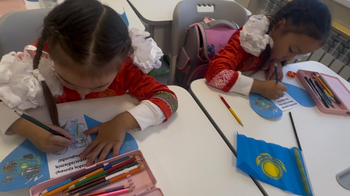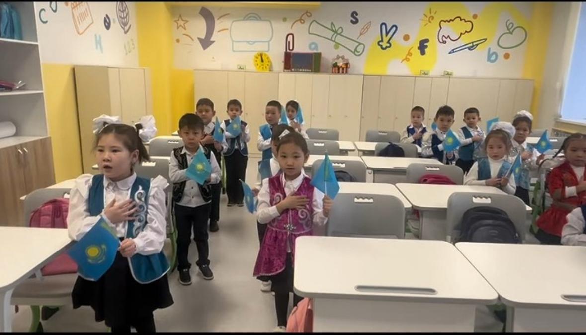 Балалар бүгін бізде ерекше оқу қызметі болады.Оқу қызметіміз бастамас бұрын, оң қолымызды жүрек тұсына қойып әнұранымызды айтайық.