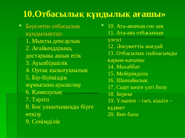 3) Отбасы жайлы ұлағатты қанатты сөздер.