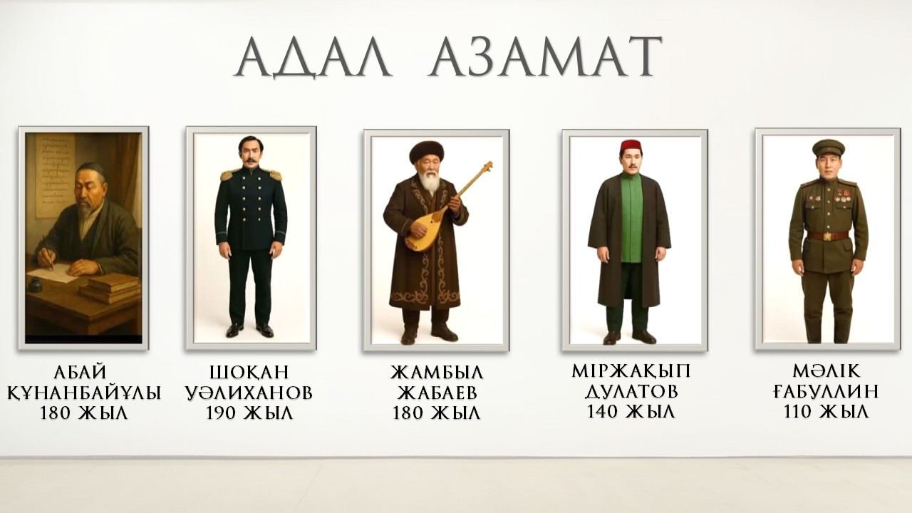 Экранда ЖИ арқылы жасалған бейнелер көрсетіледі: Абай, Шоқан, Жамбыл, Мұражақып, Мәлік. Олар адалдық туралы қысқа ой айтады. |
