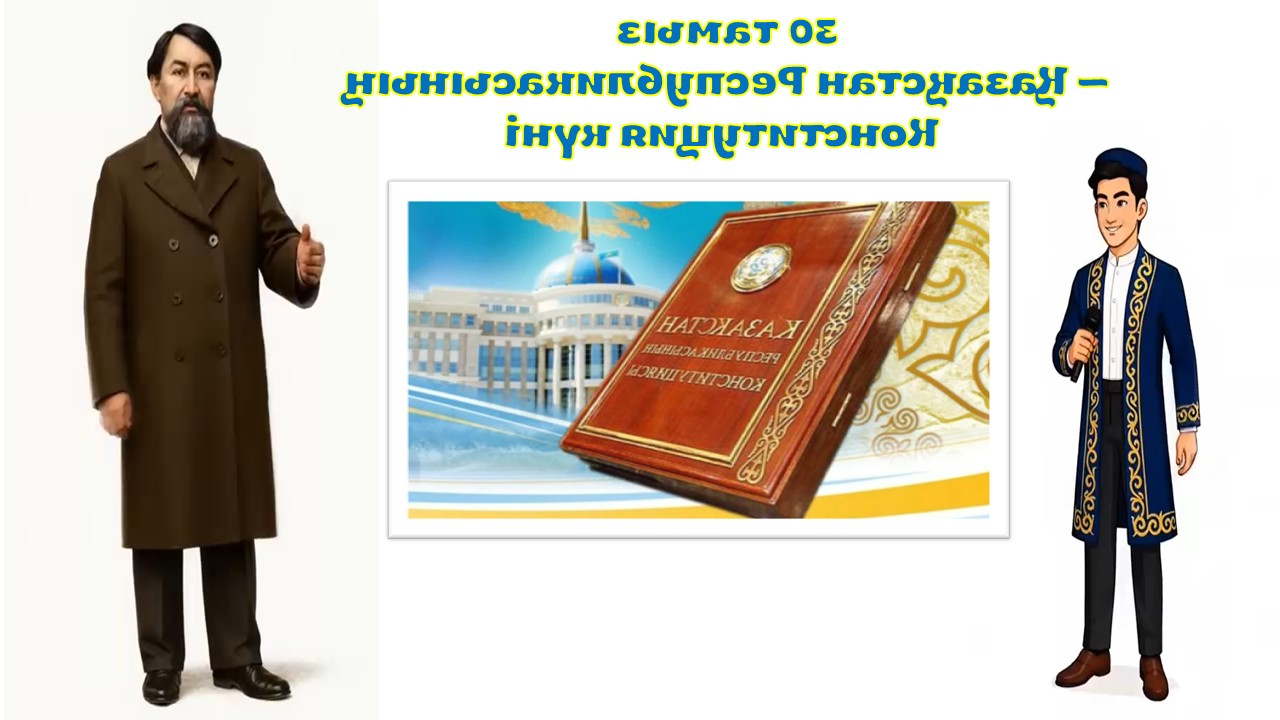 Экранда ЖИ арқылы жасалған Ыбырай бейнесі шығып, Конституция күні туралы түсіндіреді. |