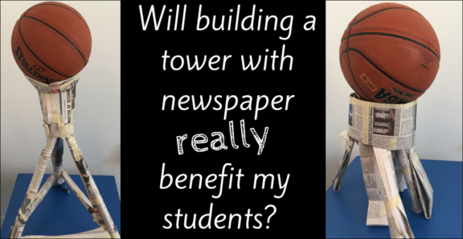 Педагогтар берілген материалдардың көмегімен мұнара құрастырады. Мақсатқа жетуде кездескен кедергілерден өтіп мұнара құрастырылғаннан кейін жетекші мұнара үстіне баскетбол добын қояды. Жасалған жұмыс құламаса, тапсырма орындалғаны.