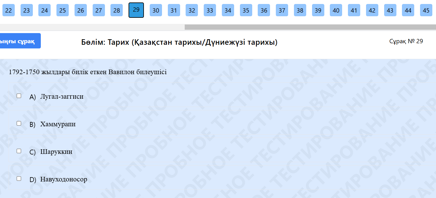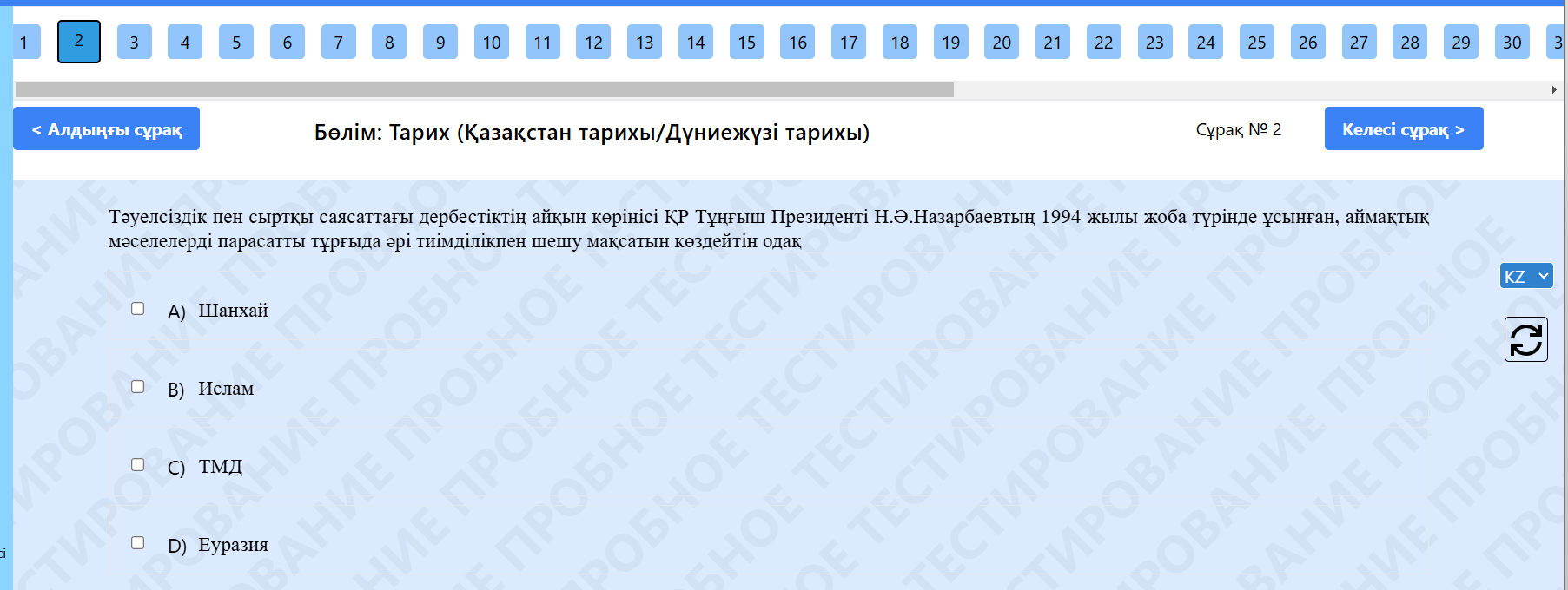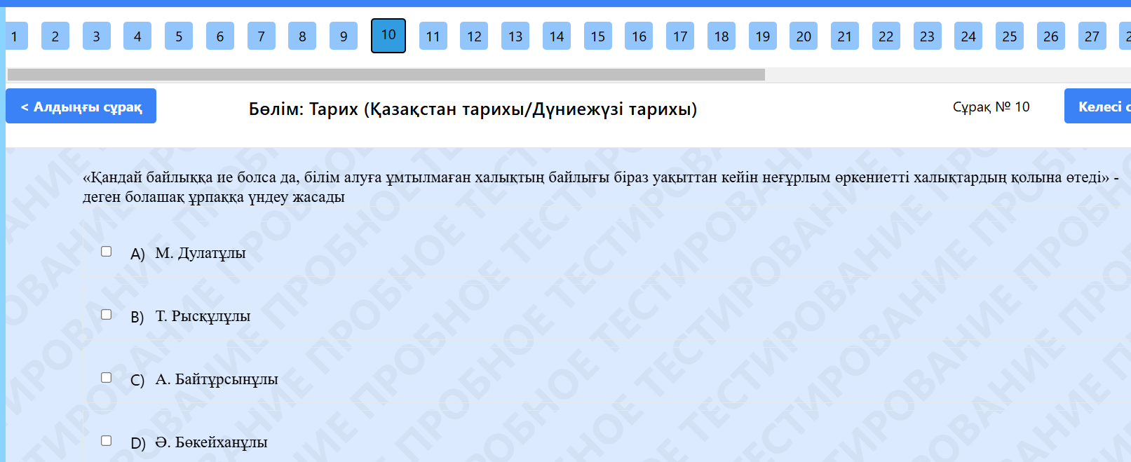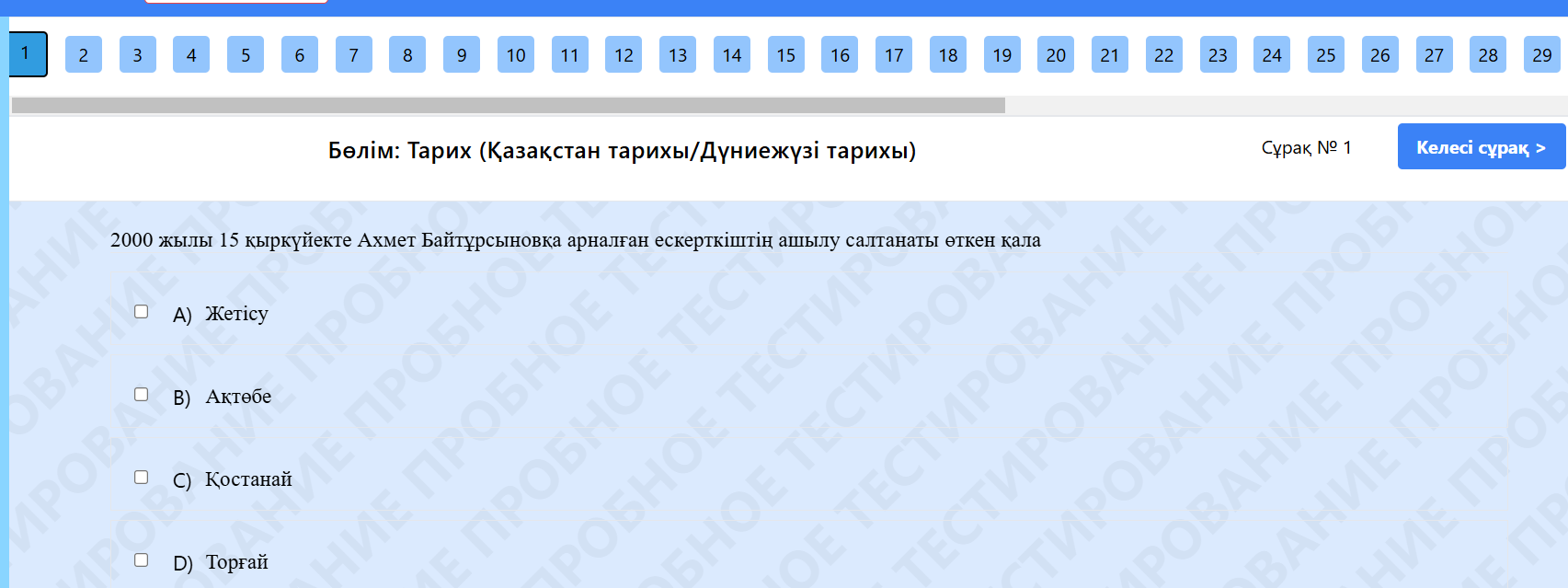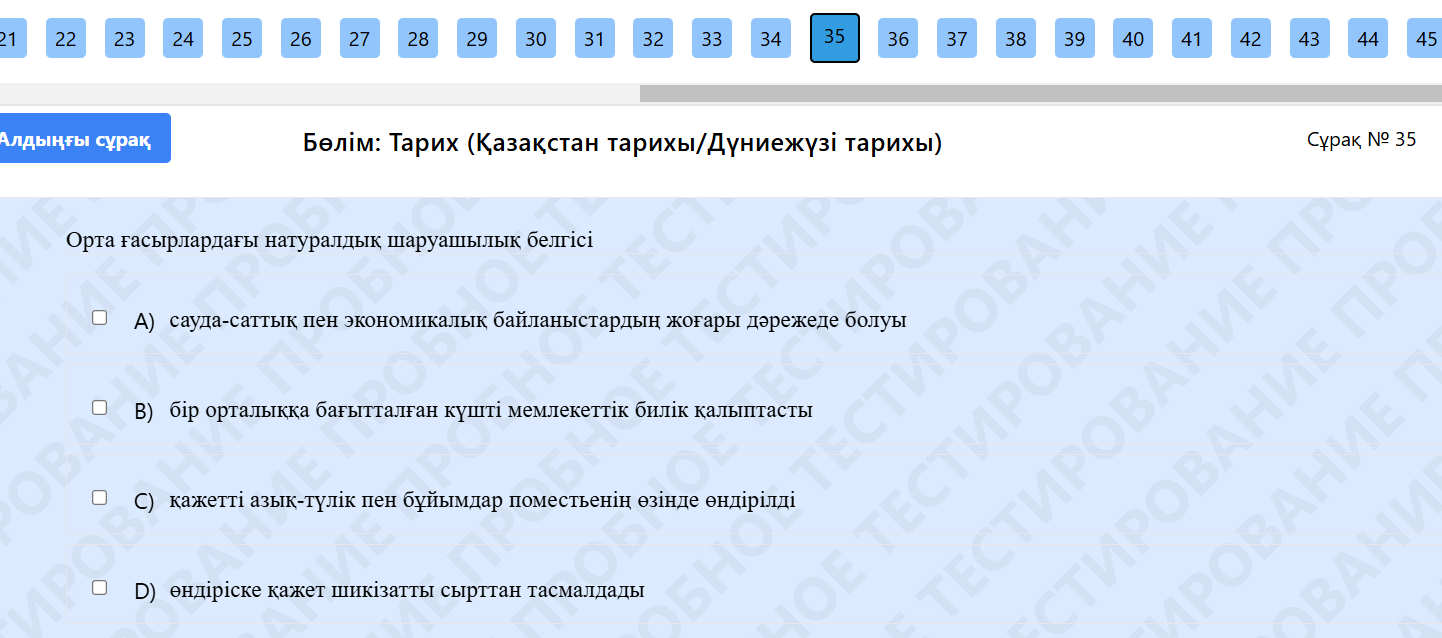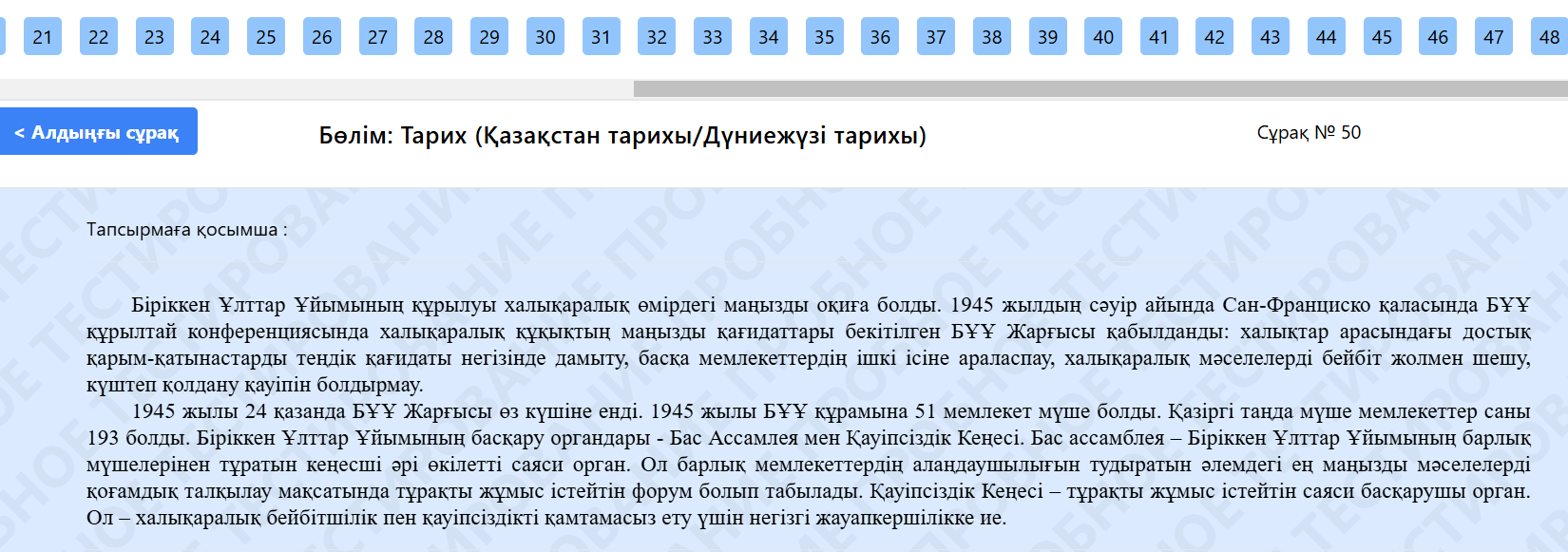 50 сұрақ-жауап. Тестцентр сайтында тапсырылған. Барлық дұрыс жауаптары берілген