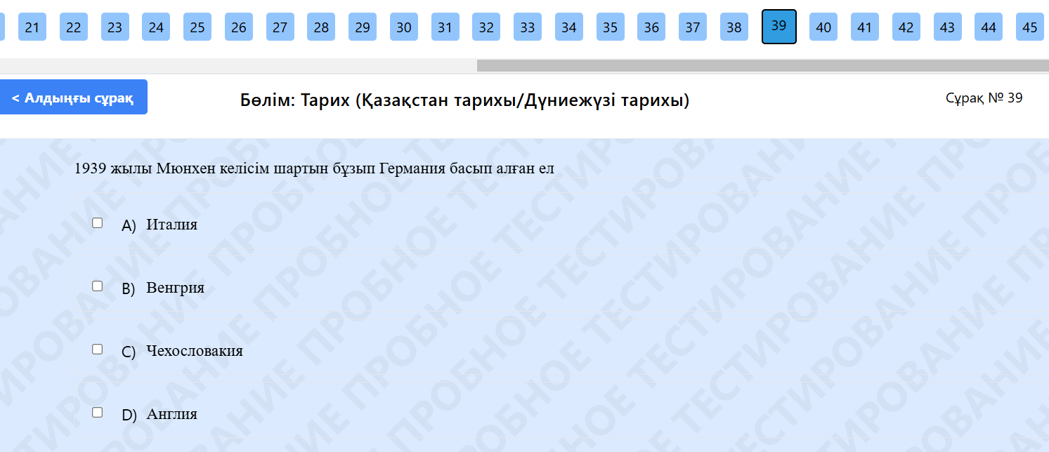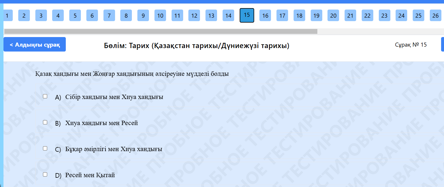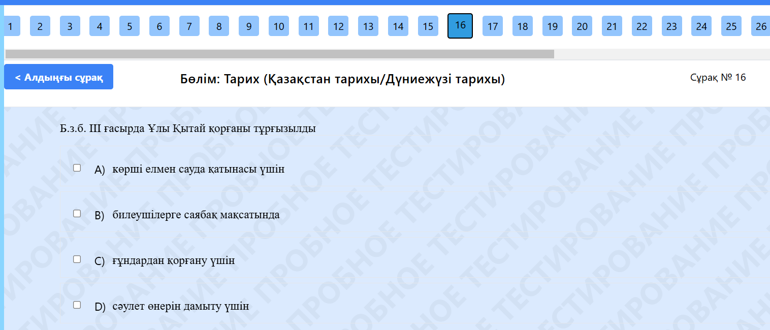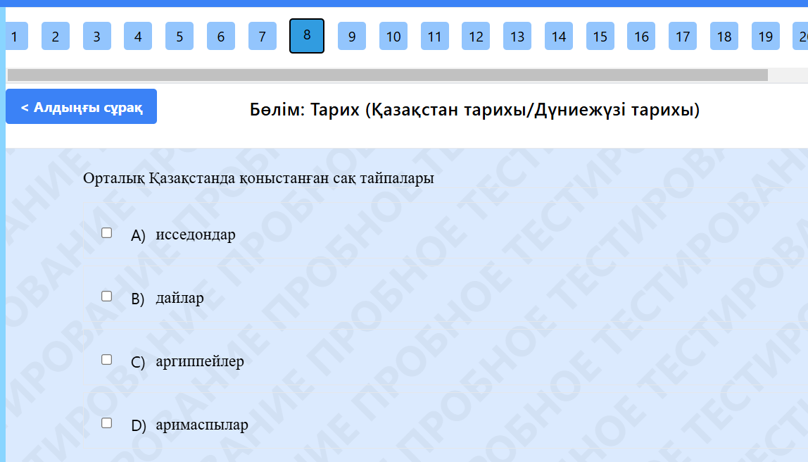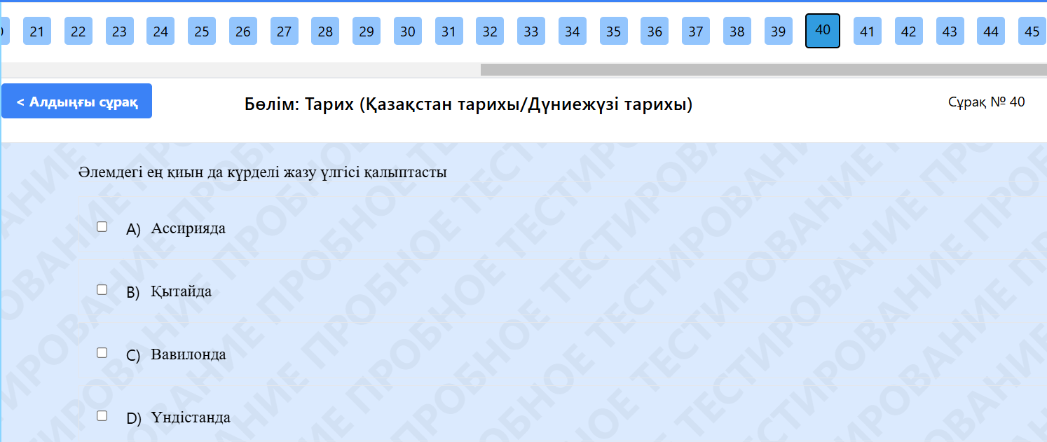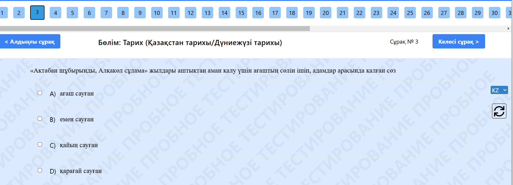 50 сұрақ-жауап. Тестцентр сайтында тапсырылған. Барлық дұрыс жауаптары берілген
