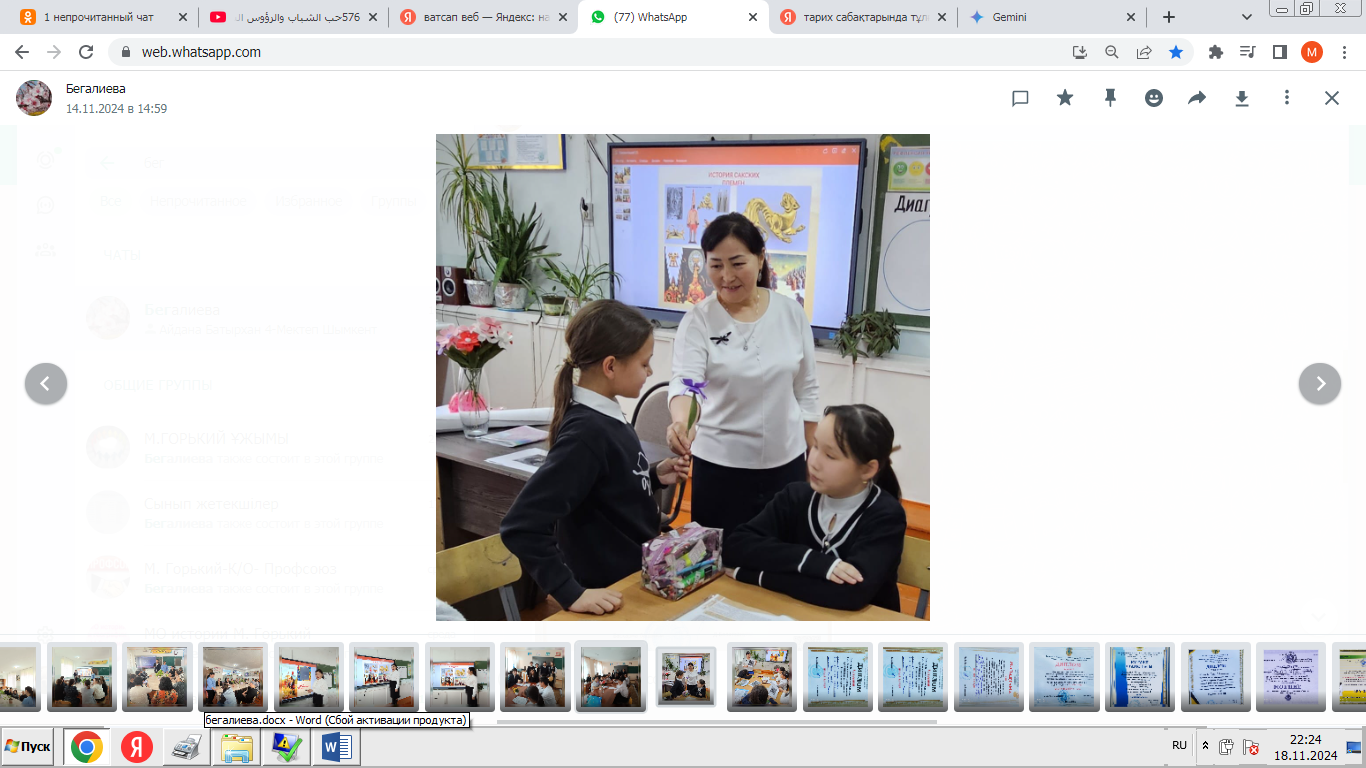(Бегалиева Рабига Токтамысовна, тарих пәні мұғалімі, педагог – зерттеуші, «М.Горький атындағы ЖББМ» ҚММ, Шардара қ, Түркістан облысы)