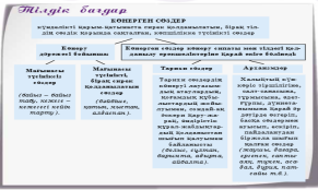 - мәтін бойынша атауын талқылап көтерілген мәселені болжайды; - көнерген сөз, эвфемизм, дисфемизм, табу сөздердің қолданыс аясын түсінеді және ажырата біледі. |