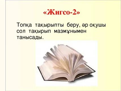 Психологиялық ахуал «Өзіңізге тілегенді басқаларға тілеңіз!» Әр оқушыға 10-15 секунд уақыт аралығында ішінде өзіне бір немесе бірнеше ізгі тілек тілеу тапсырылады. Содан кейін қатысушылар жұпқа бөлініп, бір-бірінің қолынан алып, жаңағы өзіне тілегенді жұптасына айту керек. Мұғалімнің да бұл іске қатысқаны дұрыс. Тілектерді бір-біріне топ ішінде де айтуға болады. «ЖИГСО-2» әдісі бойынша «Махамбеттің Баймағанбет сұлтанға айтқаны » өлеңінің мазмұнына талдау жасайды.