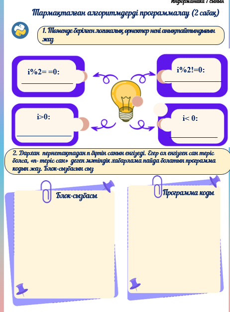 Тармақталған алгоритмдерді программалау (2 сабақ)