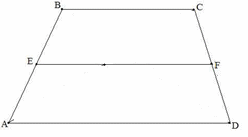 Оқушылар мына суреттен нені байқап тұрсыңдар? Алдыңғы сабақта үшбұрыштың орта сызығын сызғанбыз. Дәл сол сияқты трапецияның бүйір қабырғаларының ортасын кесінді арқылы қоссақ не болады? Сөйтіп оқушылар трапецияның орта сызығының анықтамасын қорытып шығарады.