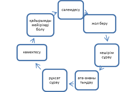 Тапсырмалар: Әңгімелеу: Мұғалім «тәртіп» туралы шағын әңгіме айтып береді. ажыратады).Тәртіпті бала Бір ауылда Ернар есімді бала өмір сүрді. Ол өте тәртіпті еді: таңертең уақытында тұрып, төсегін жинайтын, сабағына кешікпейтін, ата-анасына көмектесетін.