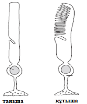 Таяқшаның, құтышаның және түкті жасушалардың құрылымы мен қызметі.