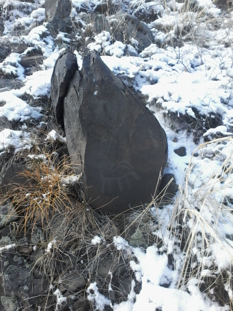 Ертедегі адамдар табиғаттан бөлініп шыққаннан кейін, қоршаған табиғаттан өздерінің қандай айырмашылығы бар екенін білмеді. Олар өздерінің дүниетанымын қоршаған ортамен байланыстырды. Өнерінің де дамуы адамдардың рухани мәдениетінің дамуынан хабар береді. Тарихтан білетініміздей адамдар мен жануарлардың ойма суреттері (графюра), рельефтер, суреттер үңгірлерде бейнеленген. Ал б.з.б 8 ғасырлардан бастап Еуразия далалы аймақтар өңірінде аңдарды бейнелеу аңдық стиль пайда болды. Оның негізгі тақырыбы-аңдарды және аңыздағы ғажайыптарды бейнелеу. Біздің ауылымыз Арқат аймағынан осындай тақырыпта салынған тастағы таңбалар кездеседі (5 сурет). Нақтырақ айтқанда Қарабұлақ елді мекенінің солтүстігіндегі биік кезеңнің төменгі жағында (батысына қарай) орналасқан.