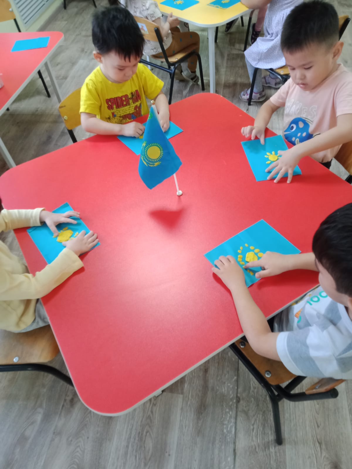 "Рәміздерді тап": Балаларға суреттер арасынан Ту, Елтаңба, Әнұран бейнелерін табуды ұсыну.