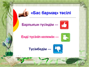 Психология лық тренинг өткізеді Өткенді пысықтайды Өлеңді тыңдайды Тақырыпты болжайды Мәліметтерді мұғалімнің көмегімен толықтырып отырады Жеке жұмыстар жасайды Жаттығу жасайды Кластер құрастырады Мақалдың жалғасын табады Коллаж жасайды Кері байланыс жасайды |