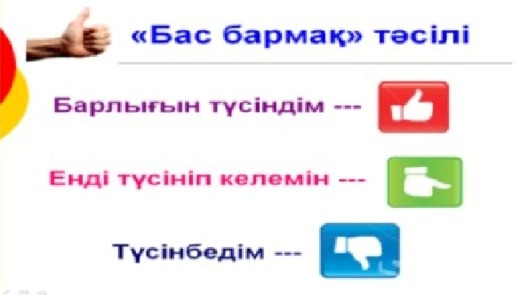 Дескриптор арқылы мұғалім оқушылардың жұмысын бағалайды. Әр оқушы жауабын тапқан оқушыны жеке жұмыста «Бас бармақ» әдісімен бағалайды. «Бағдаршам» түстері арқылы бағалайды. «От шашу» арқылы әр топ бір-бірін бағалайды. |