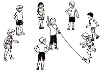 совершит 8—10 полных кругов. Побеждает тот, кого веревочка ни разу