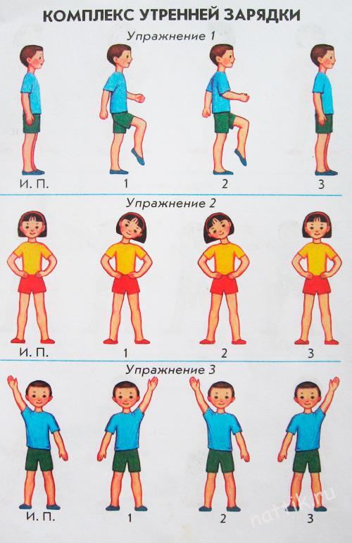 Руки вверх, руки вниз – это физ-, Крутим шею словно руль – это –куль-, Ловко прыгай в высоту – это –ту-, Бегай полчаса с утра – это –ра.