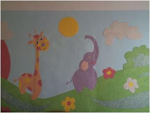 «Научить красоте» невозможно, если ребенка окружают серые стены. Так же как невозможно научить воспринимать высокую поэзию человеку, который ни разу не слышал вдохновенных стихов. Декорирование стен жидкими обоями, изготовленными своими руками из подручного материала (бумага, клей ПВА, гипс, колеровочная жидкость)-это настоящая поэзия красок, позволяющая воссоздать на стене мир детских фантазий. Оформление стен школ, садов, спальных помещений -каждому возрасту свой герой!