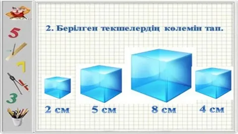 Дескриптор: Геометриялық фигуралар мен денелерді тиісті бағанға орналастырады.1б С-деңгей Геометриялық денелердің көлемін тап