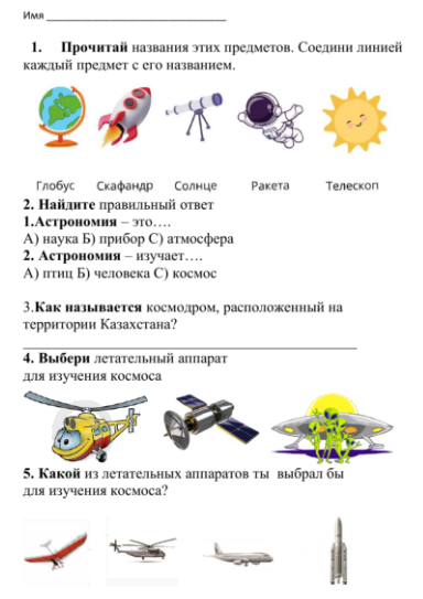 Дескриптор: Записывают предметы, которые необходимы для изучения космоса