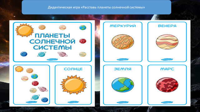 Цели: закрепить знания о космосе |