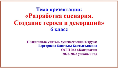Тема урока: Разработка сценария. Создание героев и декораций. 6 класс