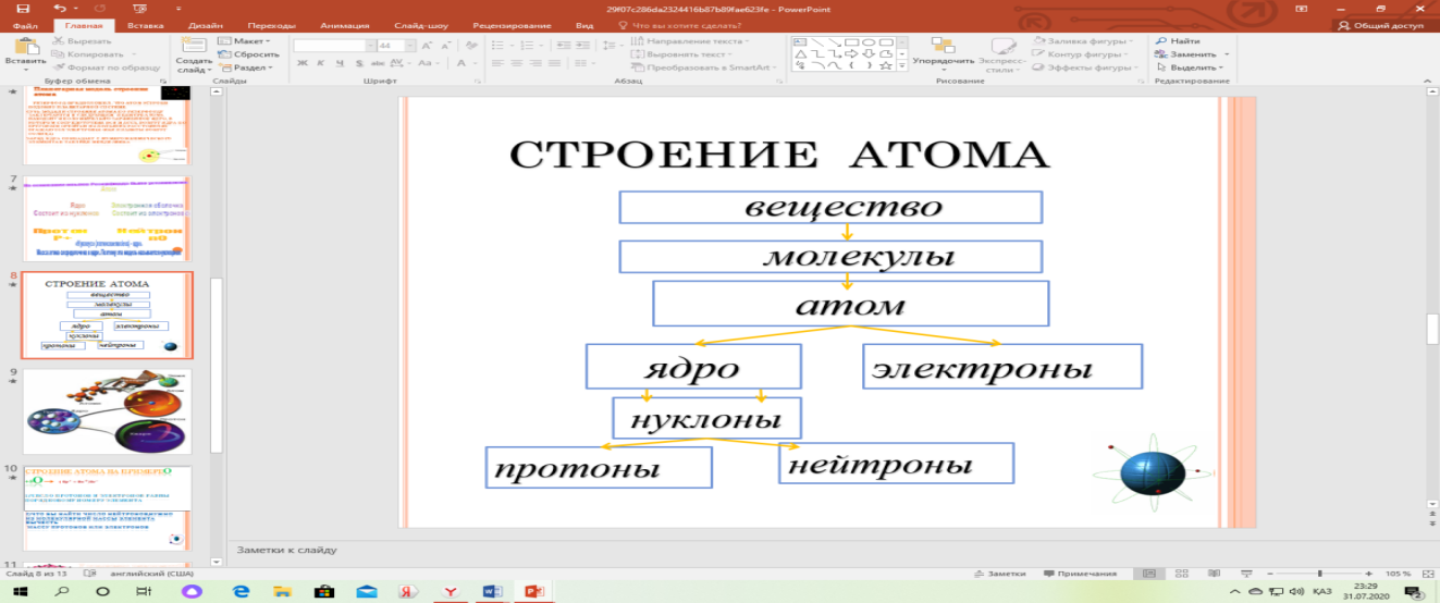 3. Ожидаемые результаты (профессиональных умений, которыми овладеют обучающиеся в процессе учебного занятия) перечисляет основные положения современной теории строения атома; объясняет физический смысл протонов, нейтронов, электронов, нуклонов и нуклидов; раскрывает содержание понятий изотопы.