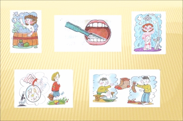 бочка, – На протяжении нескольких уроков мы с вами говорили о том, что человек – это сложный организм и существо разумное. Поэтому он должен заботится о своем здоровье. Что ему в этом помогает? Наши помощники в сохранении здоровья – Почему некоторые люди часто болеют, а другие – нет?Расскажите, как надо заботиться о глазах, о коже, о пищеварении, об ушах. (4 ребенка получают карточки с заданием) Игра “В дорогу” – Какие предметы личной гигиены необходимо взять в дорогу? (скалка, зубная щетка, паста, мыло, помада, духи, ложка, прищепки) Вредные советы от Злючки – Грязнючки: