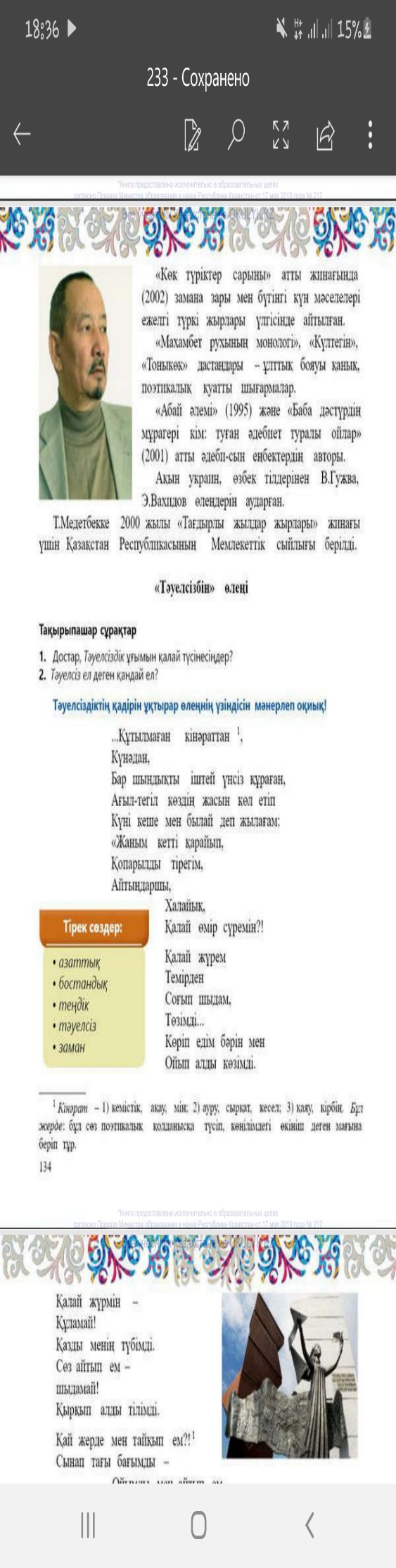 Айтылым: Темірхан Медетбектің өмірбаянын оқып, астындағы сұрақтарға жауап береді. |