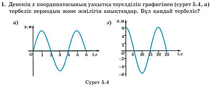 9.2.5.1 еркін және еріксіз тербелістерге мысалдар келтіру; 9.2.5.2 формулаларды қолдану арқылы амплитуда, период, жиілікті анықтау; |