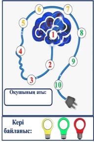Бағалау парақтарын таратып беру. «Ми қозғау» әдісі арқылы оқушылар өзін-өзі бағалайды Дұрыс жауап берген оқушы әр дұрыс жауапқа 1 балл Жалпы ұпай 2 балл |