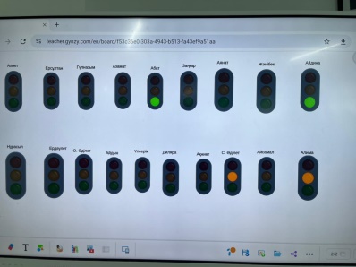 Бағдаршам әдісі арқылы сабаққа байланысты өз ойларын білдіреді. |