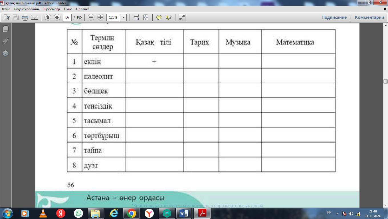 6.4.3.1 -неологизм, термин, диалект сөз, кәсіби сөздердің қолданыс аясын түсіну және ажырата білу; |