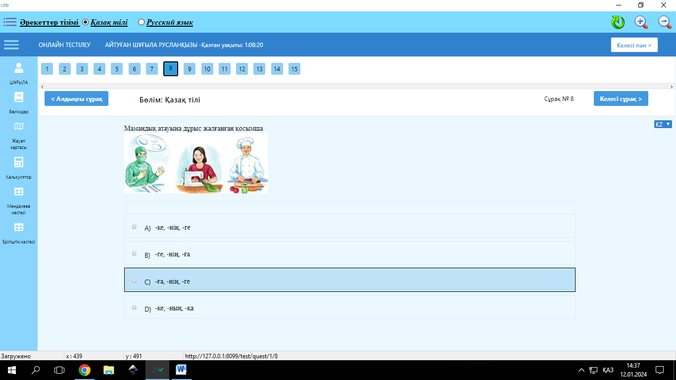 А) –ке, -нің, -ге B)–ге, -нің, -ға