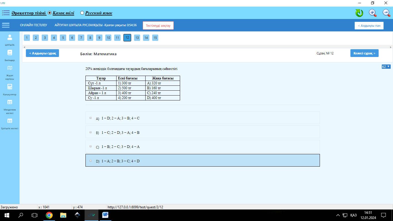 12. 20% жеңілдік болғандағы тауардың бағаларының сәйкестігі