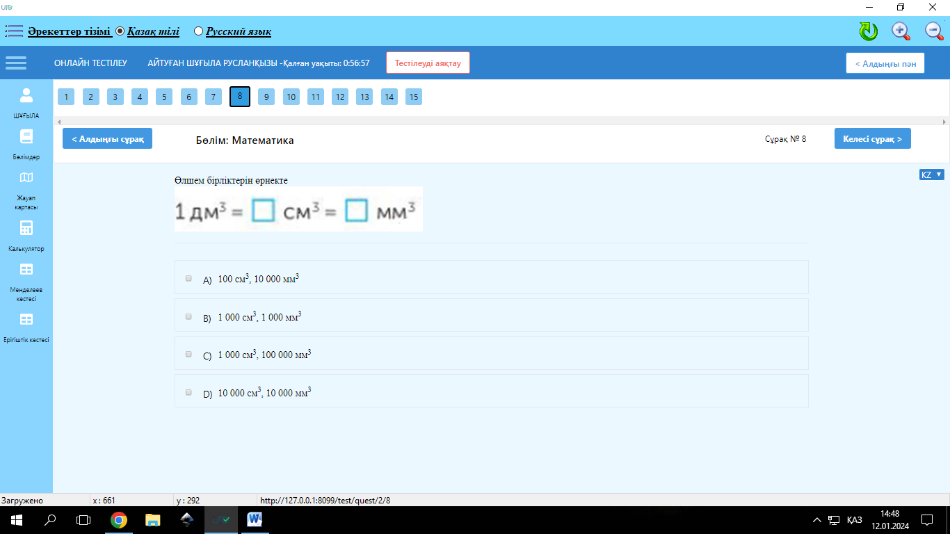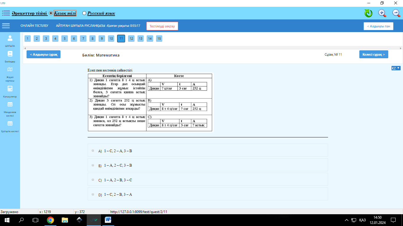 9. Есептің шығарылу қадамдары дұрыс жазылған нұсқа