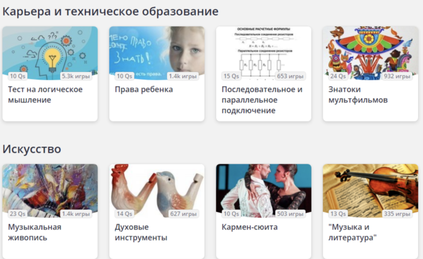Quizz материалдары, барлық мектеп пәндерін қамтиды.