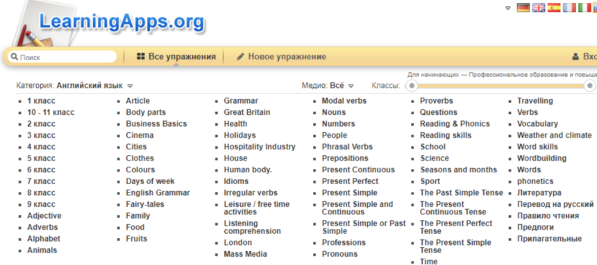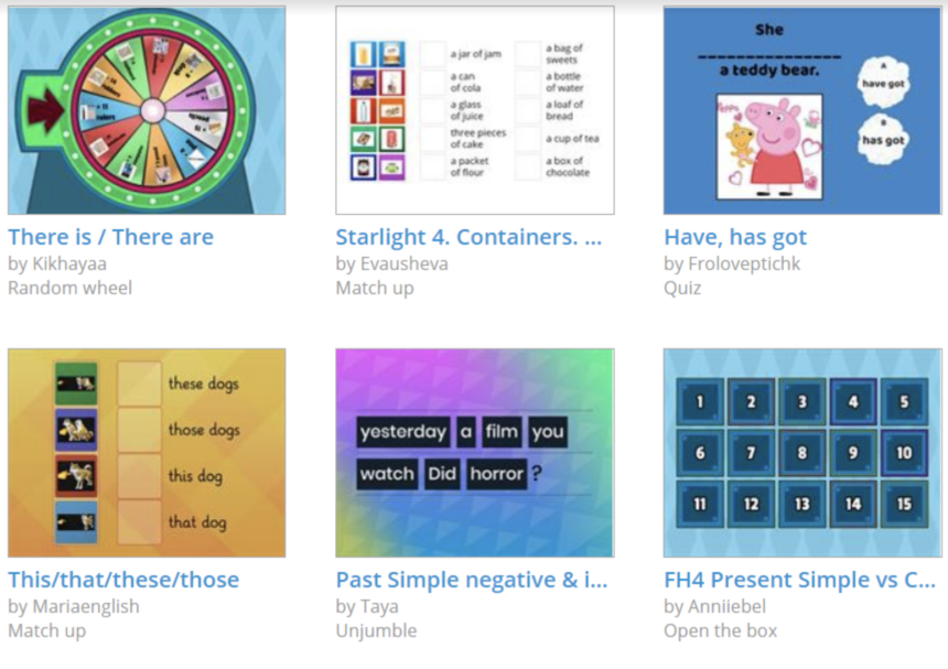 Бұл менің сүйікті ресурстарымның бірі, онда сіз 18 түрлі ойын жасай аласыз. Мұнда сіз грамматика мен лексиканы дамытуға арналған ойындарды таба аласыз. Бірақ өзіңіз ойлап табу әлдеқайда қызықты.